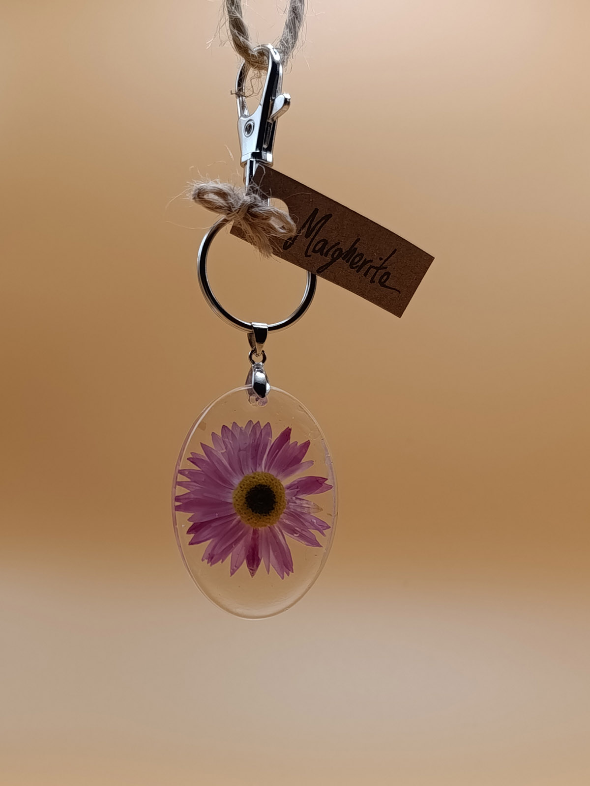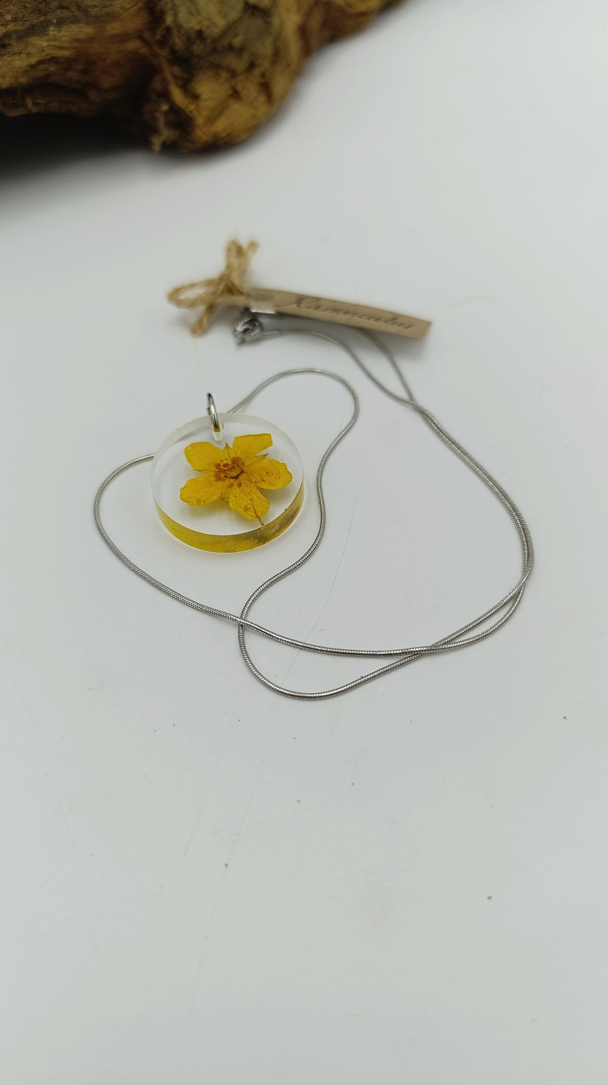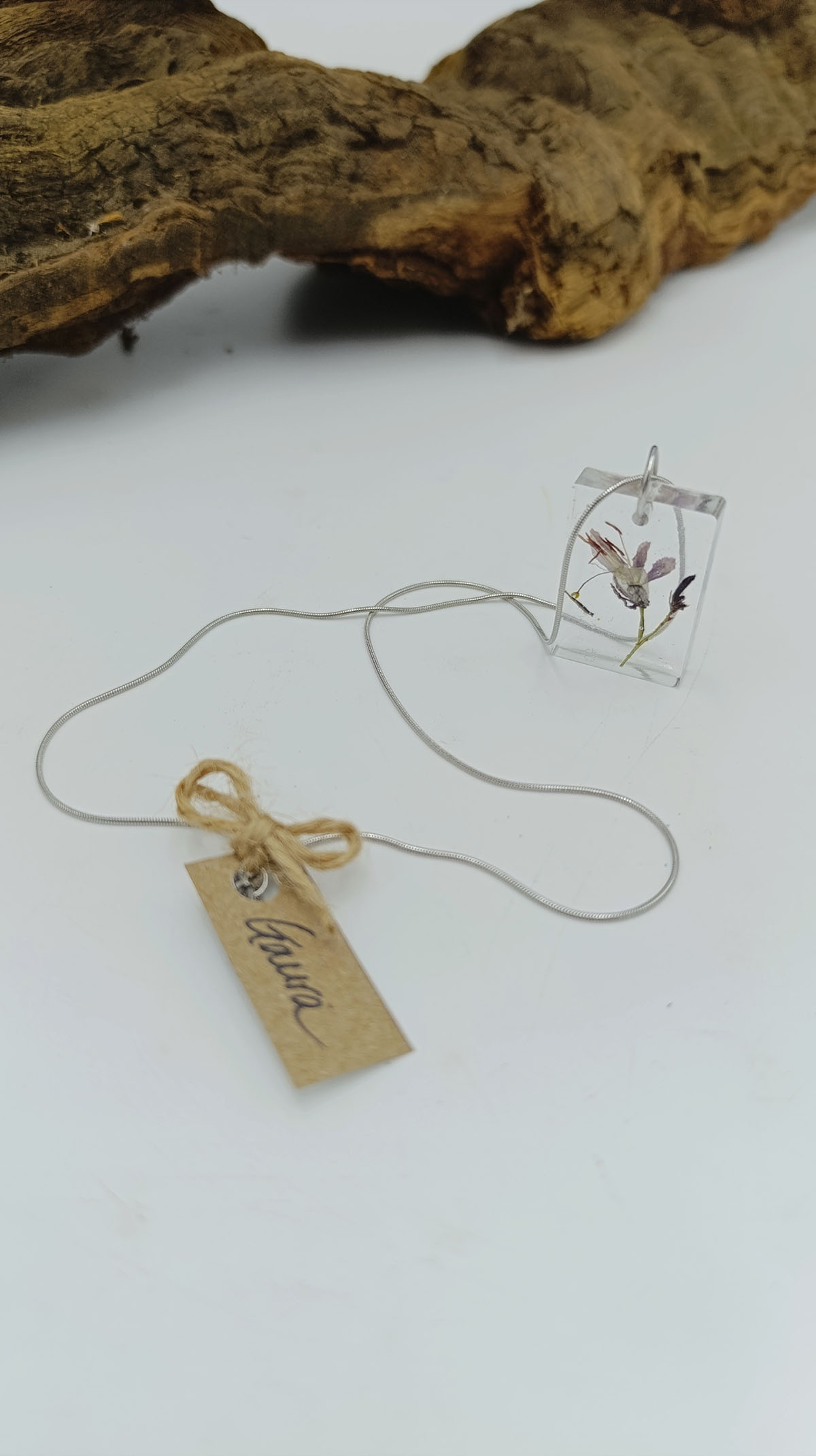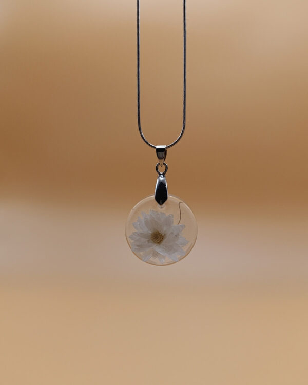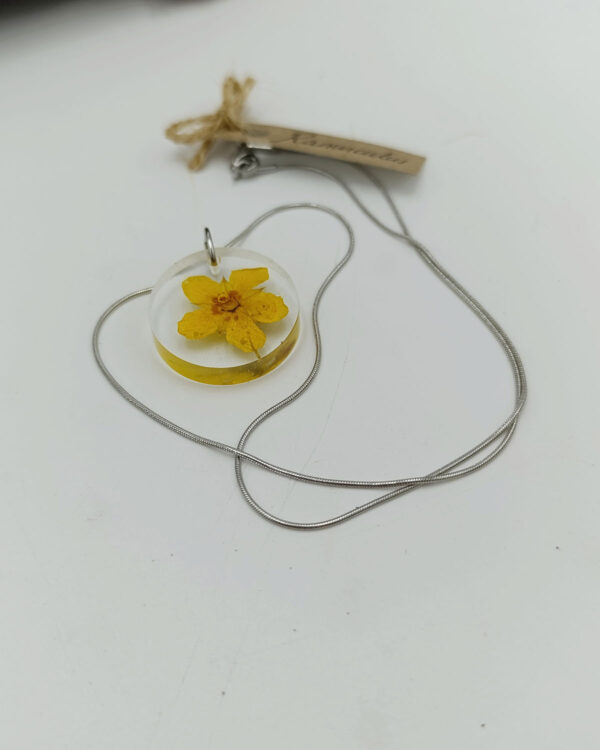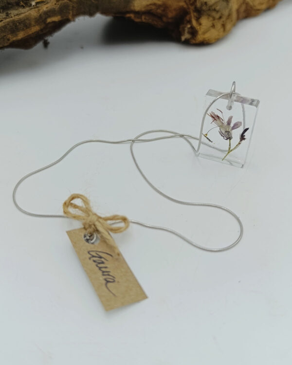 Gioielli artigianali realizzati con i fiori che coltiviamo nel nostro vivaio: collane, orecchini e portachiavi unici e fatti a mano.